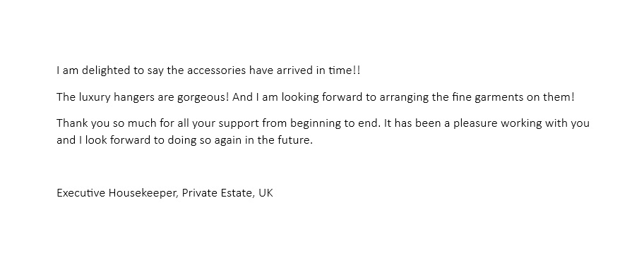 Manoir St. Just®, eine innovative Luxusmarke, entstand aus der Idee, der modernen Lady ein Accessoire anzubieten, das ihre Kleidung schützt und in Form hält. Denn nichts ist ärgerlicher und überflüssiger als ein Seidenbluse oder eine Kaschmirweste, die an den Schultern durch einen Plastik- oder Drahtbügel verformt wird, vor allem kurz vor einem Geschäftstermin und unter Zeitdruck.